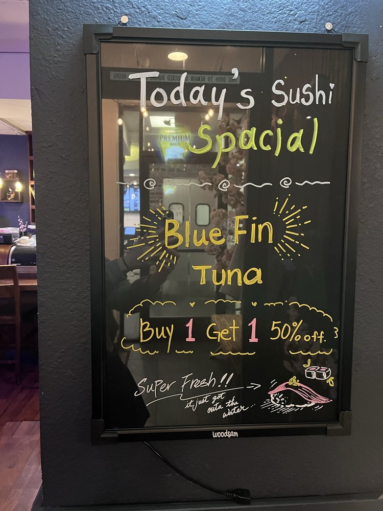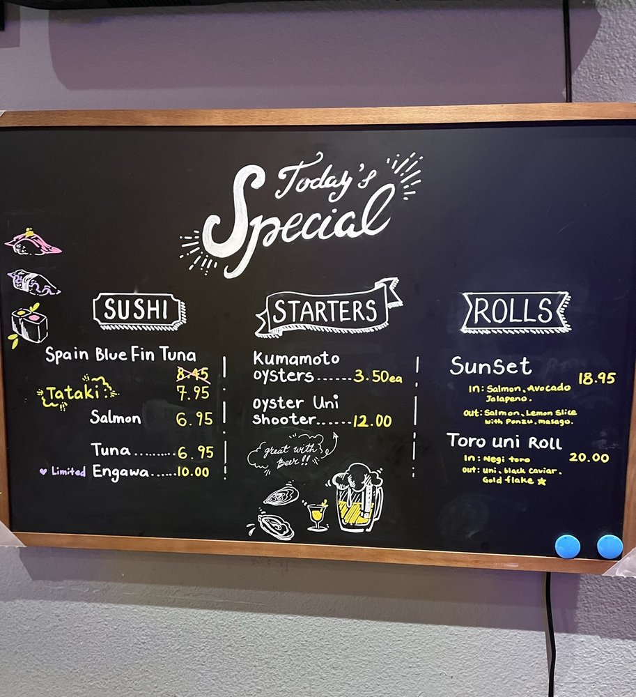 Chef's choice of 8 pieces of sushi (no shell fish) with your choice of roll (cali roll or spicy tuna roll)