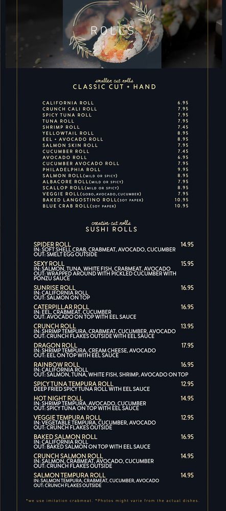 Fresh eel, crabmeat inside, avocado on top with eel sauce